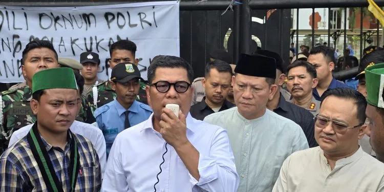 Serang, 1 September 2025 — Pimpinan DPRD Provinsi Banten menemui massa aksi dari Himpunan Mahasiswa Islam (HMI) yang menggelar unjuk rasa di Kantor DPRD Banten, Senin (1/9).